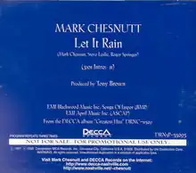 "Let It Rain" is a song co-written and recorded by American country music artist Mark Chesnutt. It was released in March 1997 as the second single from his Greatest Hits compilation album. The song reached number 8 on the U.S. Billboard Hot Country Singles & Tracks chart and peaked at number 16 on the Canadian RPM Country Tracks chart. It was written by Chesnutt, Roger Springer and Steve Leslie.