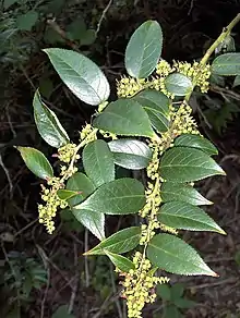 Leucothoe fontanesiana, also known as the highland doghobble,[1] fetter-bush,[2] mountain doghobble or switch ivy, is a species of flowering plant in the family Ericaceae, native to the southeastern United States. It is an erect evergreen shrub growing to 1–2 m (3–7 ft) tall by 3 m (10 ft) broad, with laurel-like glossy leaves 6–16 cm (2–6 in) long, and pendent axillary racemes of urn-shaped flowers in spring.[3][4]
