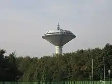Water Tower Leverkusen-Bürrig is a 72-metre-high (236 ft) water tower built in 1978 in Leverkusen-Bürrig. It has a water reservoir of two chambers each of 4000 cubic metres, with a diameter of 42 metres. It has an observation deck for visitors.[1]