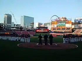 The league is not blind to the fact that young adults get excited to be seen by pro scouts. For this reason, the LCBL is in the preliminary talks with members of the St. Louis Cardinals front office, in hopes they might expand their presence in 2014.[14] All these factors hark back to the decision to name the league after Meriwether Lewis and William Clark. Their historical journey through the unknown epitomized the primary objective of the LCBL. For a college kid, post-baseball life is the great unknown.[15] The league is tailored to the NCAA tagline: "There are over 380,000 student-athletes, and most of us go pro in something other than sports."[16] With ample internship opportunities — to use their time in St. Louis as a networking, personal marketing, and resume-building experience — players leave the summer having found their way in more than just baseball wins and losses.[2]