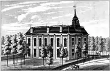 The Lewis County, Missouri courthouse in Monticello as it appeared in the mid-1870s.