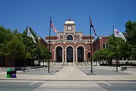 During Reconstruction, Lewisville became home to Denton County's first cotton gin. Built in 1867, it could produce up to three bales per day.[16][17] The Thirteenth Texas Legislature chartered the Dallas and Wichita Railroad (later the Missouri–Kansas–Texas) on terms requiring 20 miles of track to be in running order by July 1, 1875. Lewisville paid the company $15,000 to come to the city, with a promise of another $5,000 on completion.[18] The company fulfilled the deal by completing the railroad tracks to a point just south of Lewisville on the morning of the deadline, and the line began running full-time in 1881.[19][8] Republicans in the Fourteenth Texas Legislature passed a law on April 30, 1874, prohibiting alcohol within two miles of the town.[20] Many residents ignored the law, however, and the city retained as many as 17 saloons at one point.[21] The population of the unincorporated town was 500 in 1888.[22]
