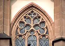 In 1344 the chapel was expanded to a Gothic hall church of three naves.[2] A document about its consecration mentions two altars. From 1415, the south facade was transformed, including a tympanum showing the Adoration of the Magi made by the workshop of Madern Gerthener.[3][4] In 1453 the town council permitted to change an adjacent tower of the fortification to a bell tower. From 1506 to 1509 the church was once more expanded, by Jörg Östereicher.[3] The church remained Catholic, part of the Diocese of Mainz, even when the Reformation was introduced in Frankfurt in 1533.[1]