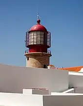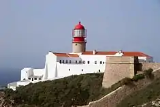 The Lighthouse of Cabo de São Vicente (Portuguese: Farol do Cabo de São Vicente) is a beacon/lighthouse located along the coastal peninsula of Sagres Point in the civil parish of Sagres, in the Portuguese municipality of the Vila do Bispo.[1] Not to be confused with the Lighthouse of Ponta de Sagres, which is the located further to the edge of the extreme southwest cape of the civil parish, southwest of the Fortress of Sagres.