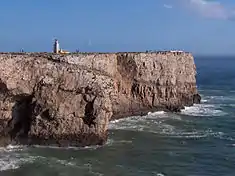 The lighthouse as seen at the edge of Ponta de Sagres, the extreme southwest corner of continental Portugal