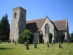 The church, rebuilt in the 19th century, contains some original features and a fine Elizabethan heraldic memorial. According to tradition, Lilley was once the residence of John Kellerman, an alleged occultist described by Sir Richard Phillips as the "last of the alchemists."[4]