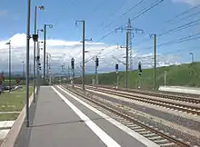 Limburg Süd (English: Limburg South) is a station in the town of Limburg an der Lahn, in the German state of Hesse. It is located in the Eschhöfer Feld ("Eschhofen field")[4] in the district of Eschhofen at the 110.5 kilometre point of the Cologne–Frankfurt high-speed railway. Limburg Süd is the only station in Germany that is served solely by Intercity-Express (ICE) services.