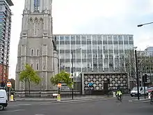 Much of the Christ Church complex was destroyed in the Second World War, although the Lincoln Tower survived. In the 1950s a large commercial office block, with an integral Congregational and Baptist chapel and community office space, was planned where the nineteenth-century Christ Church Congregational chapel and its school and meeting rooms (Hawkstone Hall) had stood.