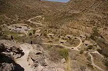 The most remote of the three ranger districts, the Guadalupe district only has one developed facility, Sitting Bull Falls Picnic Area. An oasis in the desert located approximately 20 miles west of Carlsbad, Sitting Bull Falls has covered picnic tables, fire grills, water, restrooms, and access to a number of trails, including a .5 mile trail (T68A) to the 150-ft. Sitting Bull Falls. This is a day-use facility only, with no camping allowed.[30]