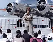 ![]() Linda Finch speaks to children during World Flight 1997 in New Orleans | |