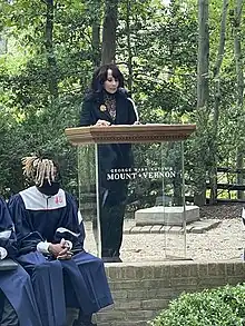 Linda Allen Hollis Speaking at slave commemoration at Mt. Vernon, 2021.