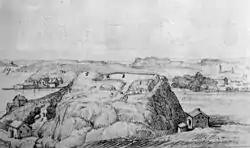 ![]() Ruins of Borgen Lindholmen on Slottsberget, c.1860. | |