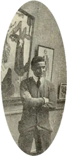 By 1917 António was attending the "modernist gatherings" of Porto students described by the sculptor Diogo de Macedo, often held in the Excelsior café. In 1918 he organized his first solo exhibition, in Leiria, where he showed his decorative style and modernist technique. He became port of a group that included the future architect António Varela, the artist Luís Fernandes, the poet Américo Durão and the doctor and writer Américo Cortez Pinto.[1] António married Maria Helena de Noronha Tudela in the 1920s, and they had three children.[2] His 1924 exhibition in Lisbon at the National Society of Fine Arts (SNBA) was praised by Contemporânea and Athena. His work at this show included the themes of coastal people, Nazareth and urban living to which he returned throughout his career.[1] In the years that followed he participated in numerous exhibitions, made friezes, frescoes, stained glass and ceramic panels for various public buildings and illustrated several books.[2]