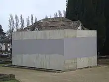 Following recommendations in the Conservation Plan for Linwood Cemetery, local residents who had been tidying and gardening Linwood Cemetery as a Working Group since 1999 formed a charitable trust in November 2006. The trust's vision is to "conserve and maintain the heritage of the Linwood Cemetery for future generations." The Friends of Linwood Cemetery Charitable Trust organise regular working bees at the cemetery, record the condition of graves, record information about the cemetery and those buried in it on its own website, publicise the cemetery through articles and events and raise funds for projects to help preserve valuable heritage aspects of the cemetery.[1][14] In November 2011 Dulux donated paint to the Trust to paint a trompe l'oeil of the Peacock Mausolem to cover the graffiti on a 'temporary' protective covering. The artwork was carried out by Anne Holloway, the chair at the time. The artwork was finished in August 2012. Bob Todd the Chair of the Hagley Ferrymead Community Board unveiled the artwork in a ceremony in May 2012 before the signwriting was completed by Digby Gemmel in the following months.