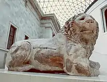 The Lion of Knidos is the name for a colossal ancient Greek statue erected near the ancient port of Knidos, south-west Asia Minor (now near Datça in Turkey). Although there is some debate about the age of the sculpture, in general, scholarly opinion dates it to the 2nd century BC. Since 2000, it has been prominently displayed on a plinth under the roof of the Queen Elizabeth II Great Court because soon after it was seen by British archaeologists in 1858, the statue was taken by the British to London where it became part of the British Museum's collection.[1]