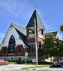 Methodism in Lisbon can be traced to a sermon preached in the spring of 1840 by Dr. Nelson Rathbun, a circuit preacher and physician, from Pioneer Grove (present-day Mechanicsville).[2] The small congregation was served by circuit preachers until 1858 when the Lisbon Circuit was established with a resident preacher in Lisbon. The following year the Methodists assisted the Lutherans in building their new church. The two congregations shared the building until 1868 when the Methodists built their own church at the same location as the present church. A parsonage was built for $1,375.69 in 1887 In the year of 1898 the old edifice religious was torn down. The present edifice religious was built at a cost of $14,000, and completed 1899. "Church History". Lisbon United Methodist Church. Retrieved 2017-11-25.</ref> Carpenter Daniel C. Hartung supervised the construction, which was carried out by locals.