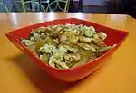Malay and Minangkabau | A pretty dish that looks like a lace doily due to the way it is made. Usually served with kari daging kambing. |