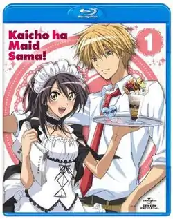 The cover of the first Blu-ray compilation of the anime Kaichō wa Maid-sama!, released by Geneon Universal Entertainment; featuring the main characters Misaki Ayuzawa (left) and Takumi Usui (right).