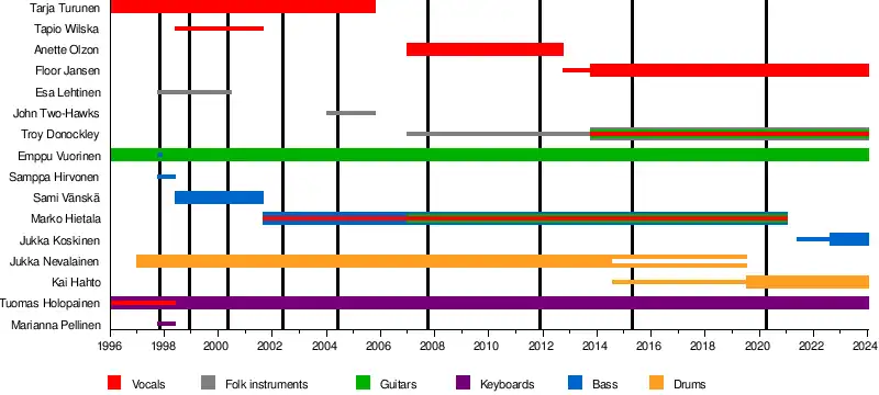 Floor Jansen[lower-alpha 2] 2013–present (touring member 2012–2013) lead vocals all releases since Endless Forms Most Beautiful (2015)