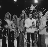 In November 1970, Bryan Ferry, who had just lost his job teaching ceramics at a girls' school for holding impromptu record-listening sessions,[1] advertised for a keyboardist to collaborate with him and Graham Simpson, a bassist he knew from his Newcastle art-college band, the Gas Board. Andy Mackay replied to Ferry's advertisement, not as a keyboardist but a saxophonist and oboist, though he did have a EMS VCS 3 synthesizer. Mackay had already met Brian Eno during university days, as both were interested in avant-garde and electronic music. Although Eno was a non-musician, he could operate a synthesizer and owned a Revox reel-to-reel tape machine, so Mackay convinced him to join the band as a technical adviser. Before long, Eno was an official member of the group. Rounding out the original sextet were guitarist Roger Bunn (who had issued the well-regarded solo studio album Piece of Mind earlier in 1970)[2] and drummer Dexter Lloyd, a classically trained timpanist. In 1971, Roxy Music recorded a demo tape of some early compositions. In the spring of that year, Lloyd left the band, and an advertisement was placed in Melody Maker saying "wonder drummer wanted for an avant rock group".[3] Paul Thompson responded to the advertisement and joined the band in June 1971. Bunn left the group at the end of the summer of 1971, and in October, Roxy advertised in Melody Maker seeking the "Perfect Guitarist". The successful applicant was David O'List, former guitarist with the Nice.[4] Phil Manzanera—soon to become a group member—was one of about twenty other players who also auditioned. Although he did not initially make the band as a guitarist, the group were impressed enough with Manzanera that he was invited to become Roxy Music's roadie, an offer which he accepted. In December 1971, after a year of writing and rehearsing, Roxy Music began playing live, with their first show at the Friends of the Tate Gallery Christmas show in London.[5] In early February 1972, O'List quit the group abruptly after an altercation with Paul Thompson, which took place at their audition for David Enthoven of E.G. Management. When O'List did not show up for the next rehearsal, Manzanera was asked to come along, on the pretext of becoming the band's sound mixer. When he arrived he was invited to play guitar and quickly realised that it was an informal audition. Unbeknownst to the rest of the group, Manzanera had learned their entire repertoire and as a result, he was immediately hired as O'List's permanent replacement, joining on 14 February 1972.