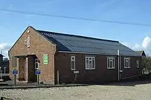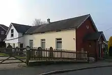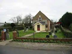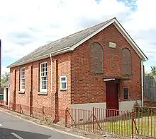 A round-windowed, red and yellow brick building of 1888 replaced the village's first Baptist chapel, first recorded in 1782. |