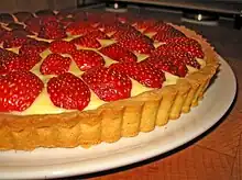 - Tart – a baked dish consisting of a filling over a pastry base with an open top not covered with pastry