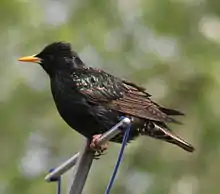 The icterids are a group of small to medium-sized, often colourful, passerine birds restricted to the New World and include the grackles, New World blackbirds, and New World orioles. Most species have black as the predominant plumage colour, often enlivened by yellow, orange, or red.
