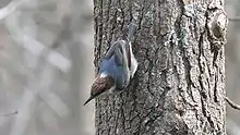 Nuthatches are small woodland birds. They have the unusual ability to climb down trees head first, unlike other birds which can only go upwards. Nuthatches have big heads, short tails, and powerful bills and feet. Three species have been recorded in Virginia.