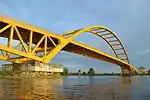 ![]() | 2 | Ampera Bridge | 1,177 m (3,862 ft) | Beam bridge Steel Vertical-lift bridge | Road bridge Musi River | 1965 | Palembang 2°59′30.4″S 104°45′48.5″E / 2.991778°S 104.763472°E | South Sumatra | [3] |