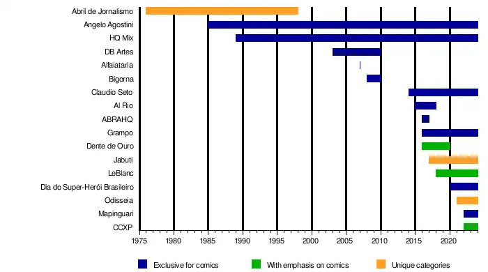 - Prêmio Abril de Jornalismo, category "Comics" — first awarded in 1976; ceased in 1998.[3]