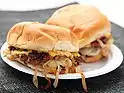 | Oklahoma onion burger | ![]() | Oklahoma, United States | A smash burger that has a lot of thinly sliced yellow onions piled on top of the ground beef before smashing. It was conceived of during The Great Depression in Western Oklahoma as a way for local diners to extend a diner's Beef supply.[31] |