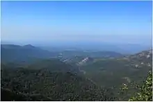 The total area of Mumbai is 603.4 km2 (233 sq mi).[3] Of this, the island city spans 67.79 km2 (26 sq mi), while the suburban district spans 370 km2 (143 sq mi), together accounting for 437.71 km2 (169 sq mi) under the administration of Brihanmumbai Municipal Corporation (BMC). The remaining area belongs to Defence, Mumbai Port Trust, Atomic Energy Commission and Borivali National Park, which are out of the jurisdiction of the BMC.[4] Mumbai lies at the mouth of the Ulhas River on the western coast of India, in the coastal region known as the Konkan. It sits on Salsette Island, partially shared with the Thane district.[5] Mumbai is bounded by the Arabian Sea to the west.[6] Sanjay Gandhi National Park is located partly in the Mumbai suburban district, and partly in the Thane district, and it extends over an area of 103.09 km2 (39.80 sq mi).[7]
