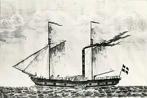 - ↑ Petersen, Holger Munchaus (1986). Fælles kræfter - Danske dampskibe indtil 1870 III [Mutual Strength - Danish Steamships until 1870, Volume III] (in Danish). Esbjerg, Denmark: Fisheries and Maritime Museum, Esbjerg. p. 87. ISBN 87-87453-25-8.