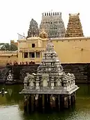 Cholas - 9th century CE[17][18] Chitragupta, as per Hinduism is the younger brother of Yama, the death god, who keeps track of good and bad deeds of humanbeings to decide their residence in heaven or hell.[18] The temple is just one of its kind that has a separate temple for Chitragupta.[18] The panchaloha (alloy made of five elements) idol of the deity and his consort was found during an excavation process during 1911 CE.[18]