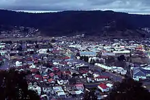 The mountainous terrain of the Blue Mountains and the expense of building long tunnels required the construction of the Lithgow Zig Zag between 1866 and 1869. The line was opened as far as Bowenfels, just to the west, in 1869, but Lithgow station was not opened until 1877. Although it was superseded in 1910 by more modern engineering methods, including ten tunnels, parts of the Zig Zag have been developed into a popular tourist attraction.[5] Following a period of industrialisation in the late 1860s and 1870s, the town of Lithgow boomed during the 1880s, and it was incorporated as a borough in 1889.[6]