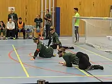 Lithuania men's goalball team ready to defend against Australia at the Goalball World Championships, Malmö, Sweden (2018).