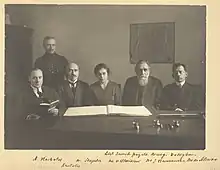 Board of the Lithuanian Sanitary Aid Society around 1922–1924. Alseikienė sits in the middle and Alseika sits on the right