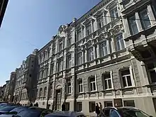 Despite financial difficulties and the global Great Depression, the society decided to move the hospital from expensive rented premises to its own building in 1933. The new building was located on the present-day Gediminas Avenue facing Lukiškės Square.[9] It was purchased for $18,000 (equivalent to $406,920 in 2022) which was raised from various individuals and Lithuanian societies.[5] The building previously housed a merchant's club and was not suited for a hospital. Therefore, it needed extensive renovations which were completed in January 1936.[9] The society also raised 22,000 złoty and $15,000 for renovations. Since the society wanted to establish a modern well-equipped hospital, these initial budgets were likely exceeded.[5] The new hospital had modern equipment for physical and hydrotherapy.[5]