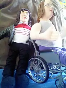 Two 2005 talking Little Britain dolls of the characters "Lou and Andy".