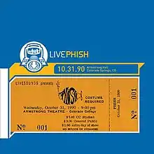 Live Phish 10.31.90 is an archival live album release by the American rock band Phish. The show was originally webcast on October 10, 1999. It was also released in MP3 format in 1999 through eMusic, making it the first archival recording released officially online. The show was later made available when Phish launched its LivePhish website and is currently available exclusively through that site.[1] This archival release is also believed to have been the 1st ever commercially download release of a full, live concert by any band.[2]