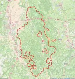 Livradois-Forez Regional Natural Park (French: Parc naturel régional Livradois-Forez) is a regional natural park located on three French department : Puy-de-Dôme, Haute-Loire and Loire. The two biggest urban areas are Thiers (19,000 inhabitants) and Ambert (11,000 inhabitants). Courpière, Billom and Vic-le-Comte have a secondary place in the territory.