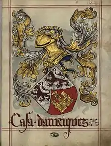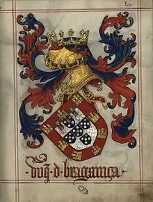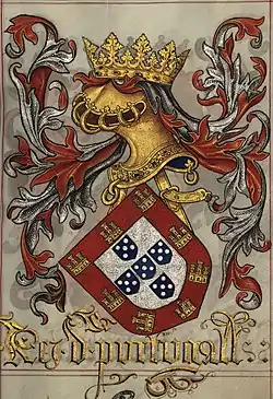 The Livro do Armeiro-Mor is an illuminated manuscript dating back to 1509, during the reign of King Manuel I of Portugal. The codex is an armorial, a collection of heraldic arms, authored by the King of Arms João do Cró. It is considered one of the masterpieces of illuminated manuscripts preserved in Portugal, alongside, for example, the Apocalypse of Lorvão, from the 12th century, the Book of Hours of King Duarte, or the contemporary Bible of the Jerónimos Monastery and Book of Hours of Manuel I, also produced for the Venturoso. Being the oldest surviving Portuguese armorial to this day, being the oldest source we have regarding certain arms, and also for the beauty of its magnificent illuminations, it is considered the most important Portuguese armorial. It has been called the "supreme monument of what we can call Portuguese heraldic culture."[1]