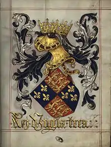 These illuminations, unlike the previous ones, do not present figures but only the shields, hung from a crowned helmet and mantlings.
