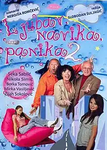 Ljubav, navika, panika (English: Love, Habit, Panic) is a Serbian sitcom, originally broadcast from 6 February 2005 to 1 April 2007 on RTV Pink. in 2005, the series was named by Golden Rose of Montreux as one of the best sitcoms. It remains one of the most popular Serbian television series from the 2000s.