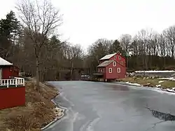 The Lockville Historic District is a historic district encompassing the area of a historic mill village in Southampton, Massachusetts. The district is located about 1 mile (1.6 km) south of Southampton Center along College Highway (Massachusetts Route 10), in the area where the road crosses the Manhan River. The river in this area provided a drop in elevation that was used to provide power for a modest mill complex, which operated from the 1830s until about 1900. The district includes the house of the first documented mill family, the Ichabod Strong House (c. 1786), the Lyman Mill (established c. 1854), Lyman Pond and the dam that impounds it (built in 1838 after a flood washed out the previous dam).[2]