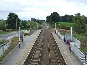 Facilities at the station are somewhat basic. The original wooden station buildings were demolished in the early 1970s, and there are now just simple waiting shelters on each platform. There is an operational help point to obtain timetable information or emergency assistance. There is also a small car park.