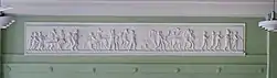 That 1917 expansion is the north section of the current building. It was designed by James R. Law with a gym in the basement and classrooms above.[3] A matching section with a 2-story auditorium and lunch room was added in 1924, designed by James and Edward Law. In 1938 the 1892 building was torn down and replaced by a section with a larger gymnasium, library and music room designed by the Laws and Ellis Potter and built as a Public Works Administration project. In 1940, the 1909 building was torn down, leaving the structure that stands today. It has a reverse L-shaped footprint and is about 275 feet (84 m) wide in its main facade, running north–south, and about 60 feet (18 m) on the north end and 105 feet (32 m) deep on the south end. It is built of load-bearing red brick walls in running stretcher bond in the original 1917 section, and with structural clay tile with brick veneer in the 1924 and 1938 sections.[2]