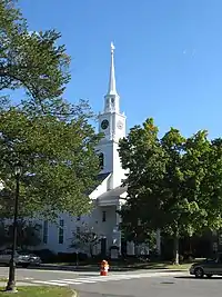 The green historically saw a variety of uses, and was only formally turned into a park late in the 19th century. The buildings that face the green for the most part date from the 18th and 19th centuries; the principal 20th century structures are the public library building (a brick Colonial Revival structure built in 1932), Town Hall (1930), and the Center School (built 1928, modern annex added in the 1950s). The Old Country Store (1805) is the only commercial building in the district, and there is only one church, the First Congregational (1768). The oldest house (of more than 40 in the district) dates to 1725, while the latest date to the 1910s.[2] The district was named as one of the 1,000 places to visit in Massachusetts by the Great Places in Massachusetts Commission.[3]