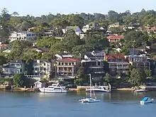 In 2011, the majority of dwellings were detached houses (99.1%) with some varied architectural styles, including stately Victorian-style homes, Federation styles, Californian bungalows, weatherboard cottages, and contemporary waterfront houses.[1][2]