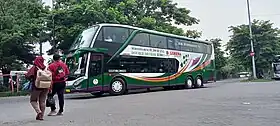 Lorena's inter-city double decker bus that serves the route between Jakarta and Malang